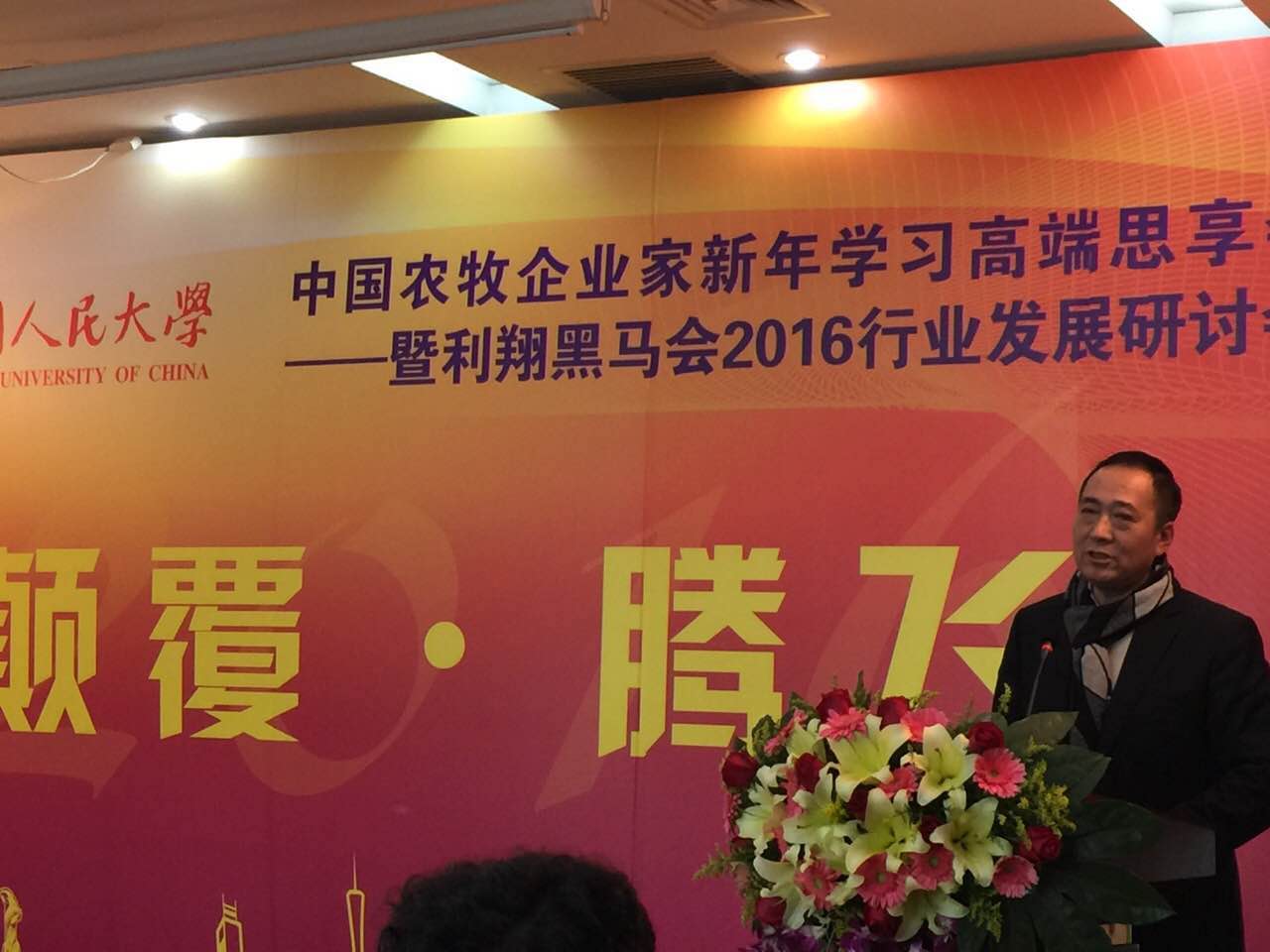 2016中國農(nóng)牧企業(yè)家新年學(xué)習(xí)高端思享會 暨利翔黑馬會2016行業(yè)發(fā)展研討會勝利召開  —— 張利庠教授:跨界思維顛覆行業(yè)思維 — 世界是一個系統(tǒng)、不是一個專業(yè);消費綁架生產(chǎn)、金融決定實業(yè)、系統(tǒng)大于專業(yè);文化和心態(tài)顛覆技術(shù)和生存 — 從“取勢”到“明道”,不僅是賺錢、還要為全人類面臨的重大挑戰(zhàn)提出解決方案,從浮躁到安穩(wěn),企業(yè)家應(yīng)該為興趣、為理想、為夢想而創(chuàng)業(yè)創(chuàng)新,"明道"未來!會上和農(nóng)牧業(yè)集團董事長方彥明先生也作了精彩分享!